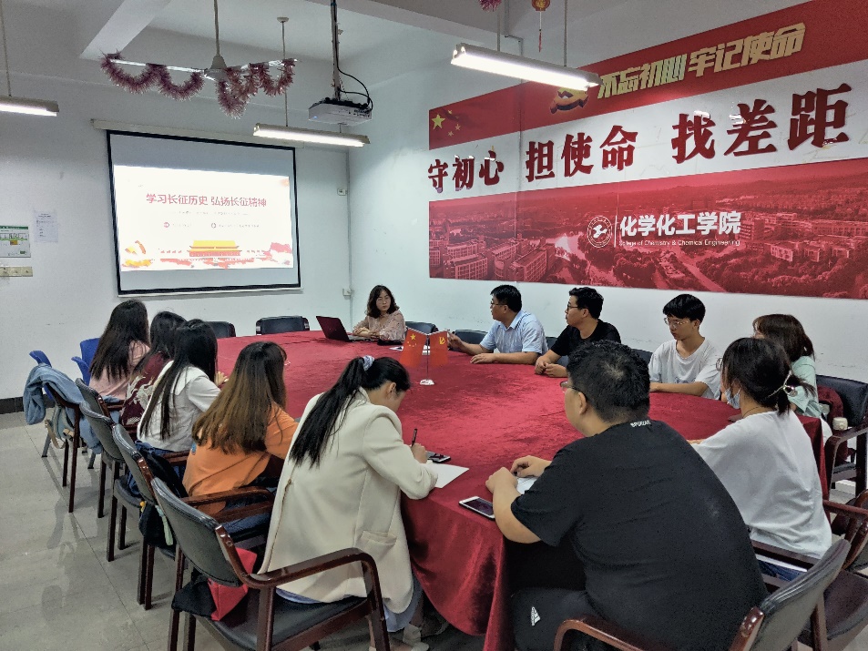 支部书记首先回顾了慢慢长征路,从中介绍了红军长征的背景,长征的路线,长征过程中的重要事件。随后讲解了长征胜利的伟大意义,长征粉碎了蒋介石扼杀中国革命的企图,使中国革命转危为安,使中国共产党有了稳固的革命根据地,实现了我党北上抗日的总方针;通过长征也确立了毛泽东同志在党内的领导地位,确立了毛泽东军事思想、政治思想的指导地位。最后号召党员同志们要不忘初心走好新长征路,通过此次对长征历史的学习,我们要从长征精神中汲取并发扬红色革命力量,长征已成为历史,但长征精神跨越时空、永不过时。我们要学习并弘扬长征精神,为实现中华民族伟大复兴的中国梦而继续奋斗。