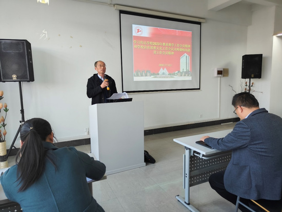 会上,学院党委书记宋勤健带领教职工共同学习并传达了学校2023年教育教学工作会议精神和学校宣传思想文化工作会议暨师德师风建设工作会议精神。宋勤健强调,学校面临新一轮教育部和上海市教育综合改革的重大机遇,全体教职工要强化担当作为,认真履职尽责,积极探索教育科技人才一体化发展,大力推进产教融合、科教融汇、职普融通,促进思政课程融合发展、现代产业学院建设、学科建设调整、课程教考分离等工作,号召全院教职工积极践行上海市教委关于高等教育提升十大专项行动实施方案,把办学质量绩效、特色贡献作为价值导向,着力提升办学层次。同时,要求全院坚持立德树人,深化三全育人理念,完善意识形态工作责任体系,加强思想文化阵地的管理,凸显工程大和学院的文化底蕴。
