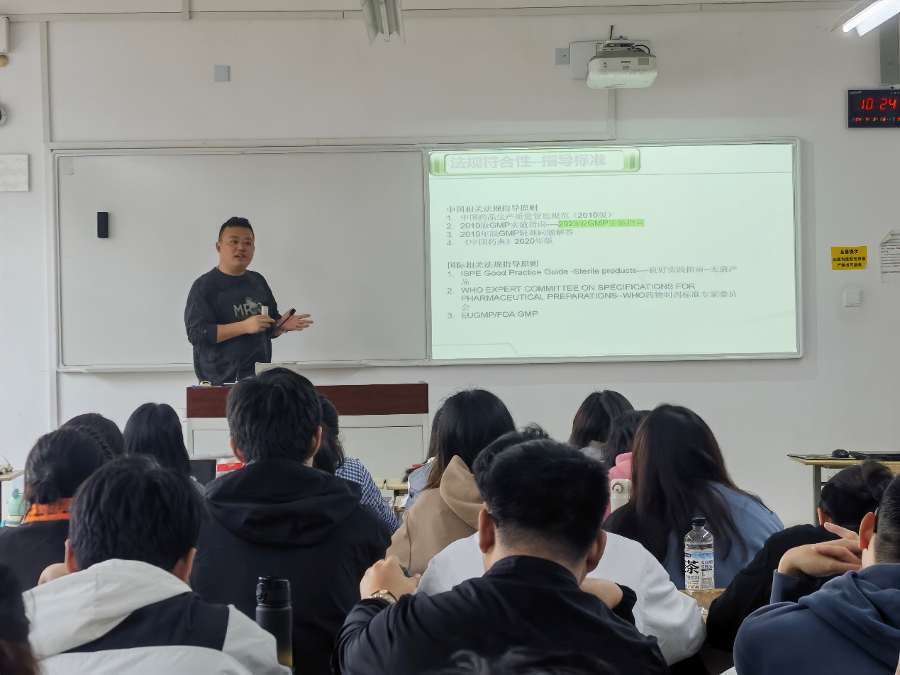 为落实“校企协同育人”模式,进一步推进产学深度融合、深化校企合作。4月3日上午,《制药设备与车间设计》课程主讲教师王晗老师特邀企业专家在教学楼E303用实际工程项目的案例延申讲解了工程项目的法规符合性、工艺设计要点和设计流程三个方面。