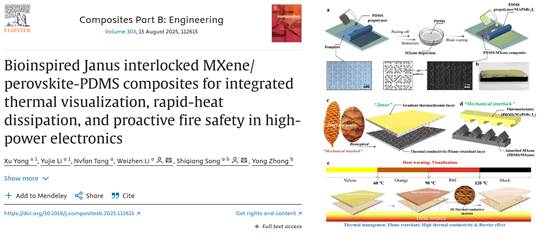 近日,437ccm必赢国际宋仕强副教授指导硕士研究生安新妍、杨旭分别在学术期刊《Advanced Functional Materials》(中科院一区Top,影响因子19)、《Composites Part B: Engineering》(中科院一区Top,影响因子14.2)上发表了题为“Movable-type Printing and Chameleon-Inspired PhotothermalBimodal Flexible Polymer Arrays for Spatiotemporally Programmable MultilevelEncryption”和“Bioinspired Janus Interlocked MXene/Perovskite-PDMSComposites for Integrated Thermal Visualization, Rapid-heat Dissipation, andProactive Fire Safety in High-Power Electronics”的研究论文。