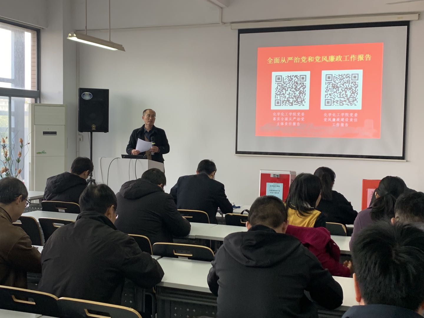 会上,宋书记向与会教职工介绍了2021年度学院党委履行全面从严治党主体责任、加强廉政风险防控、落实中央八项规定精神、加强制度建设、完成巡察整改和“回头看”工作等方面的推进情况和工作成果等。宋书记提到,学院党委全面从严治党和党风廉政建设离不开全院教职工的大力支持,同时也需要大家在2022年继续支持和监督学院党委的相关工作,共同努力为学院学校事业发展添砖加瓦。