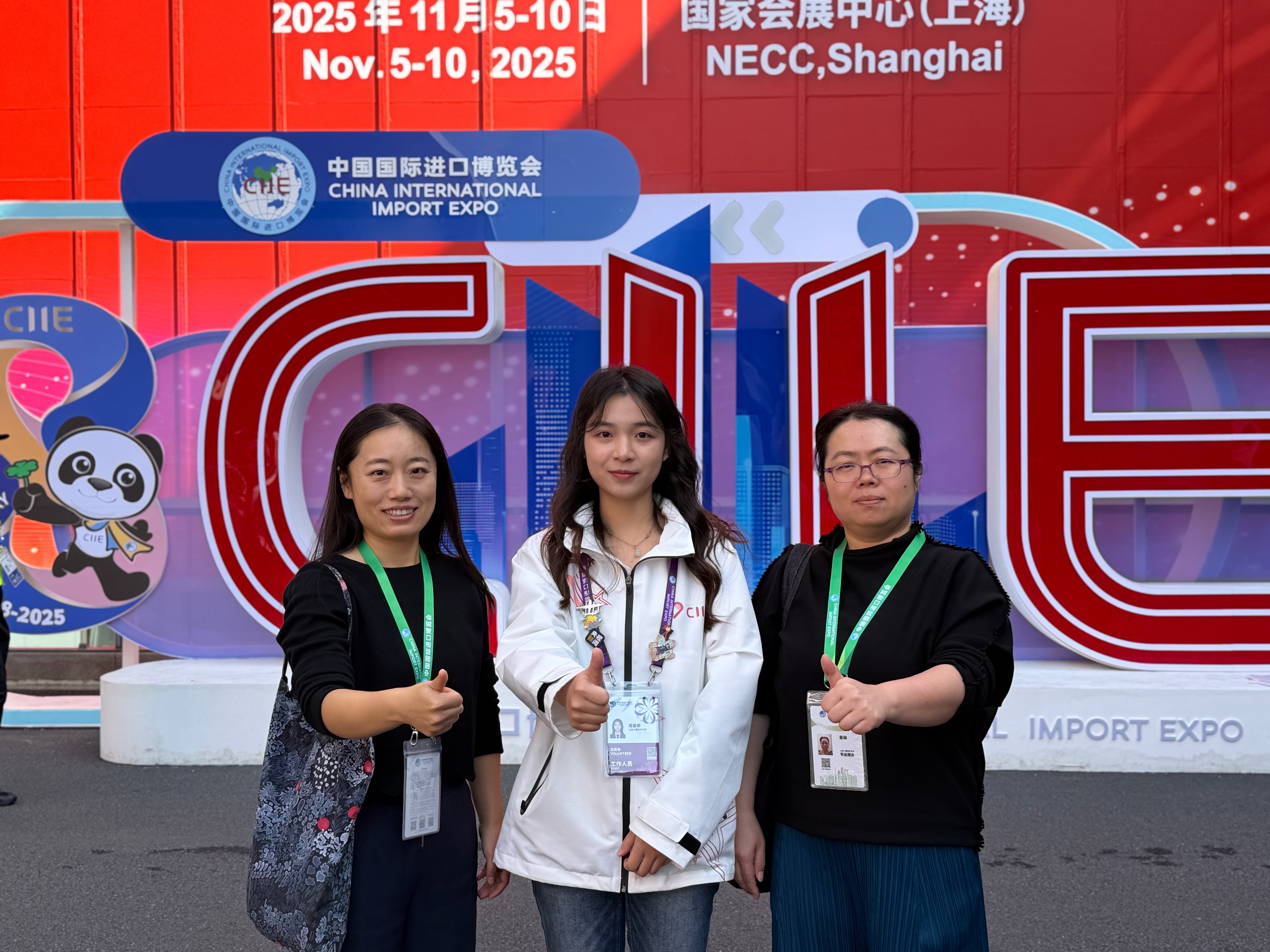 本周,第七届中国国际进口博览会举办期间,437ccm必赢国际党委副书记秦颖老师带队前往上海进博会慰问进博会志愿者周紫妍,并送上学院的关怀与鼓励。