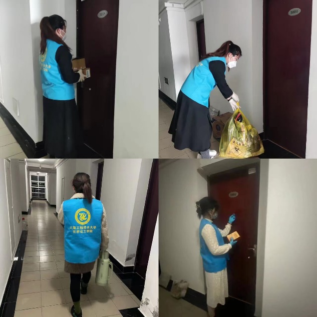 参加志愿服务的同学有:靳瑜琴、鲍存、金作明、李清萌、王金霞、李紫薇、杨希辰、张子文、叶丽晓、宁利文等。志愿者们轮流值班,负责一日三餐按时送餐上门,帮助隔离同学代购日用品、取快递,收垃圾等工作。她们按照学校疫情防控工作要求和任务分工,积极行动,冲锋在前,展示出工程大青年绝不退缩的青春之姿,表现出青年学子积极作为的昂扬面貌。