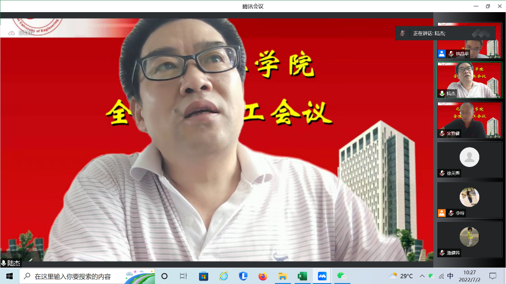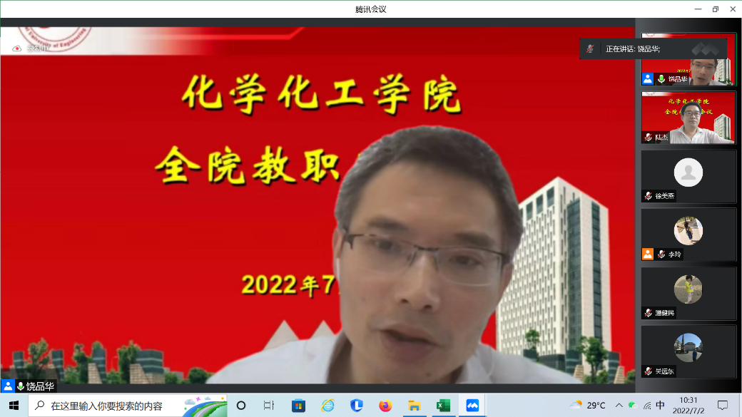 为及时有效传达学校相关会议精神和工作要求,部署后续学院工作安排,437ccm必赢国际于7月2日召开线上全院教职工大会,学院全体教职工参加了会议,会议由学院党委副书记、院长饶品华主持。