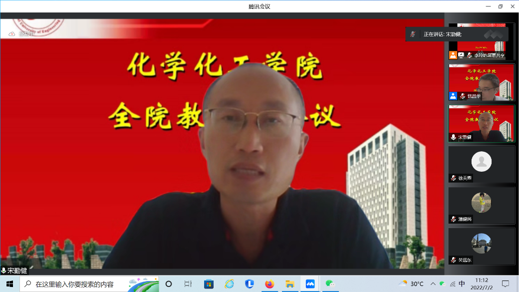 会上,学院党委书记宋勤健老师向全体教职工传达了市委第七巡视组对我校巡视“回头看”情况的反馈意见,存在的问题主要是:落实巡视整改要求,促进深化标本兼治有差距;深化从严管党治校不到位,权力运行监督制约仍有不足,重点领域问题依然存在;突出以巡促治,推动学校改革发展不够有力,学科特色优势不足,立德树人聚焦不够;班子和干部人才队伍建设存在薄弱环节。宋书记强调,学院高度重视巡视组的反馈意见和建议,据此对学院相关工作进行自查自纠,切实做到以巡促改、以巡促建、以巡促治。宋书记还传达了学校疫情防控工作小组(扩大)会议精神,要求学院全体师生要坚决贯彻落实学校学院疫情防控工作要求,确保暑期师生健康安全,学校平稳运行。同时,再次强调实验室安全的重要性,要求大家高度重视,研究生导师要承担起所带学生实验室安全第一责任人的责任,学生暑期在校开展实验,明确要求导师需到校进行现场指导,学院也将强化暑期实验室安全管理,加强检查督查,对未达到要求的实验室暂停使用。