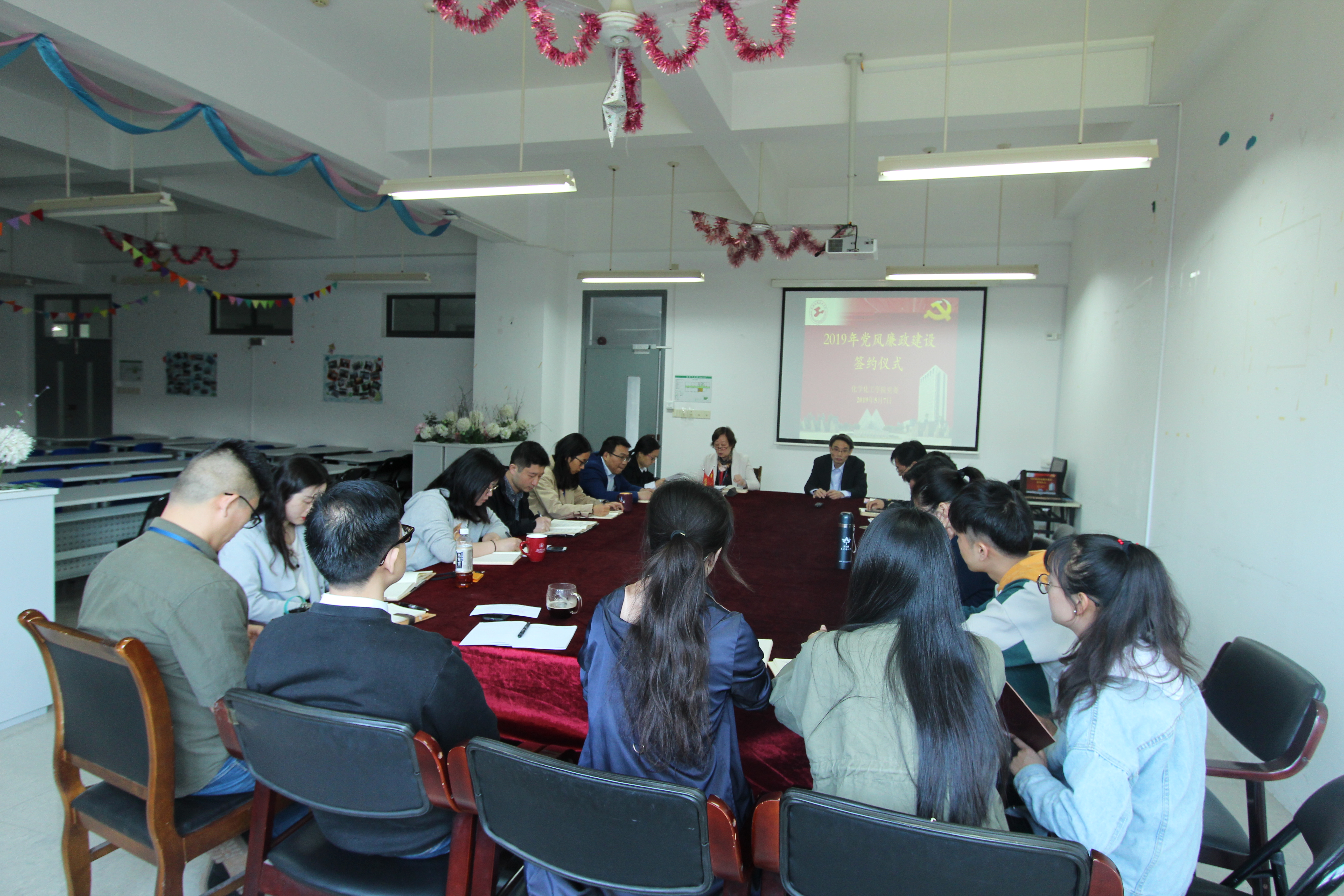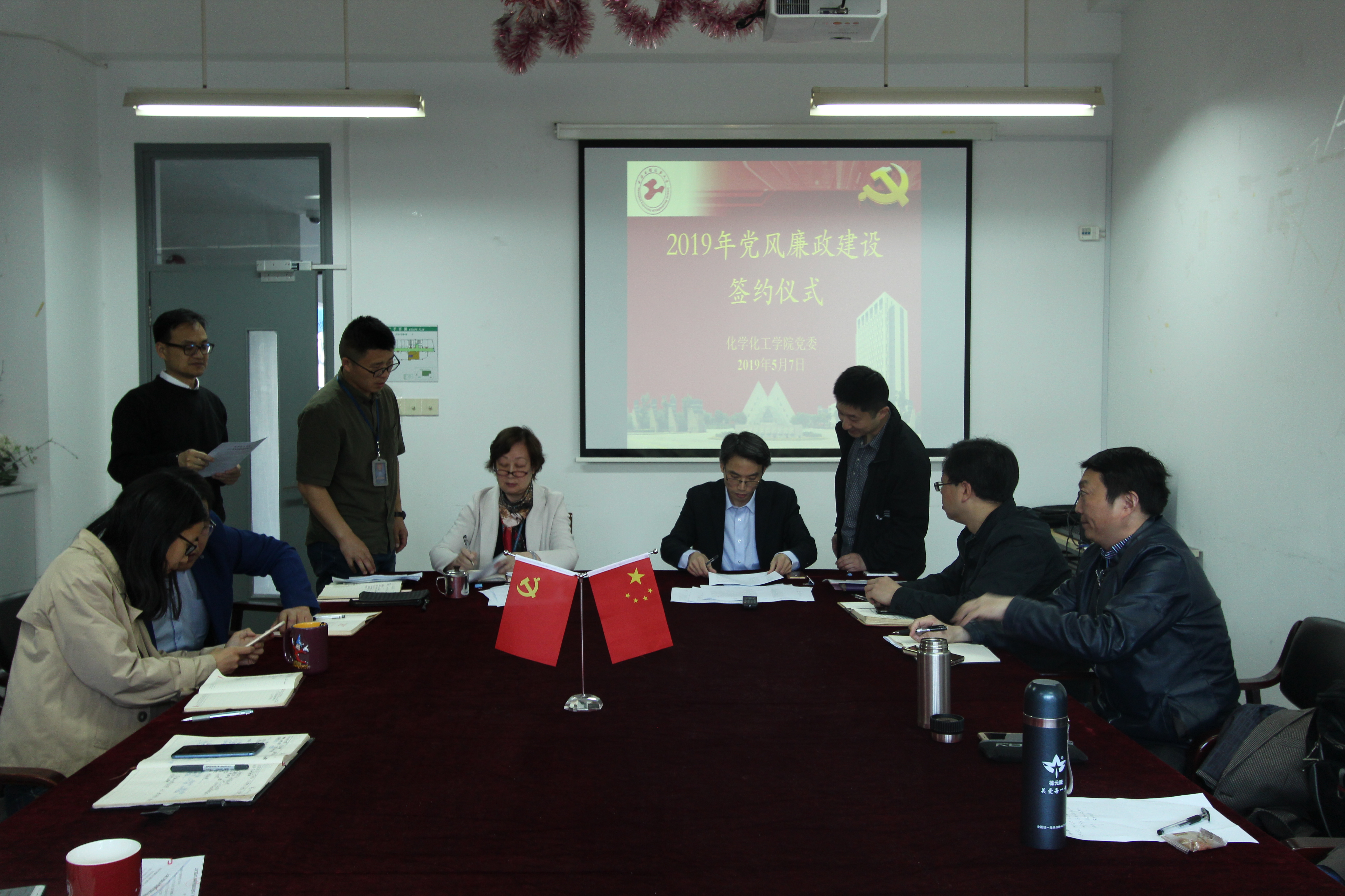 为深入学习十九大精神,以习近平新时代中国特色社会主义思想为指导,深入贯彻习近平总书记在十九届中央纪委三次全会上的重要讲话精神,认真落实学校全面从严治党工作会议工作部署,437ccm必赢国际党委于5月7日上午在实训楼4403会议室举行2019年党风廉政建设签约仪式,会议由学院党委书记刘宇虹主持,学院领导班子成员、全体党支部书记和系(室)主任参加了本次会议。