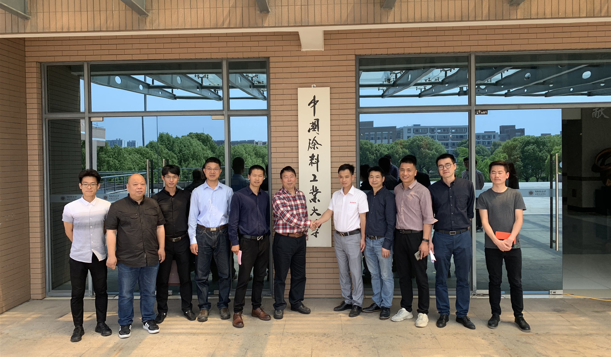 金华市易途新材料有限公司姜笑君副总经理,陈景民副总经理,总工,包雅峰经理,朱坤经理,赵帅经理。437ccm必赢国际,陈凯敏博士,范欣博士一同参加了本次签约仪式。签约仪式结束后,胡总参观了437ccm必赢国际测试中心和中国涂料工业大学,对双方的合作充满了信心。