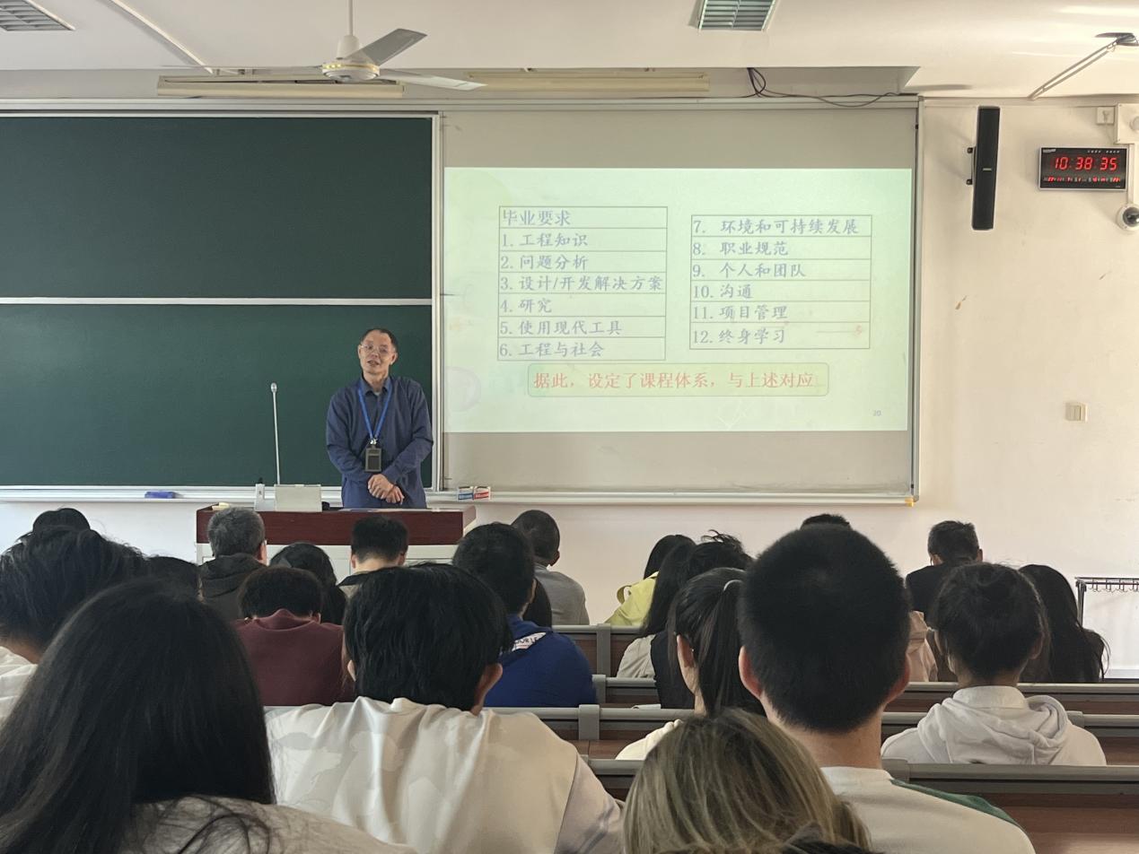 专业负责人张文启教授代表环境工程系为新生们做了专业介绍。张文启老师结合我国“双碳”战略的实施、环保产业的机遇,生动详实地介绍了我校环境工程专业的由来与发展、专业概况及环保产业的发展与人才需求。作为中国工程教育认证通过专业及国家级一流本科专业建设点,张文启老师详尽地为新生们讲解了本专业的培养目标、毕业要求及课程体系,并一一回答了新生们关于培养计划方面的疑问。