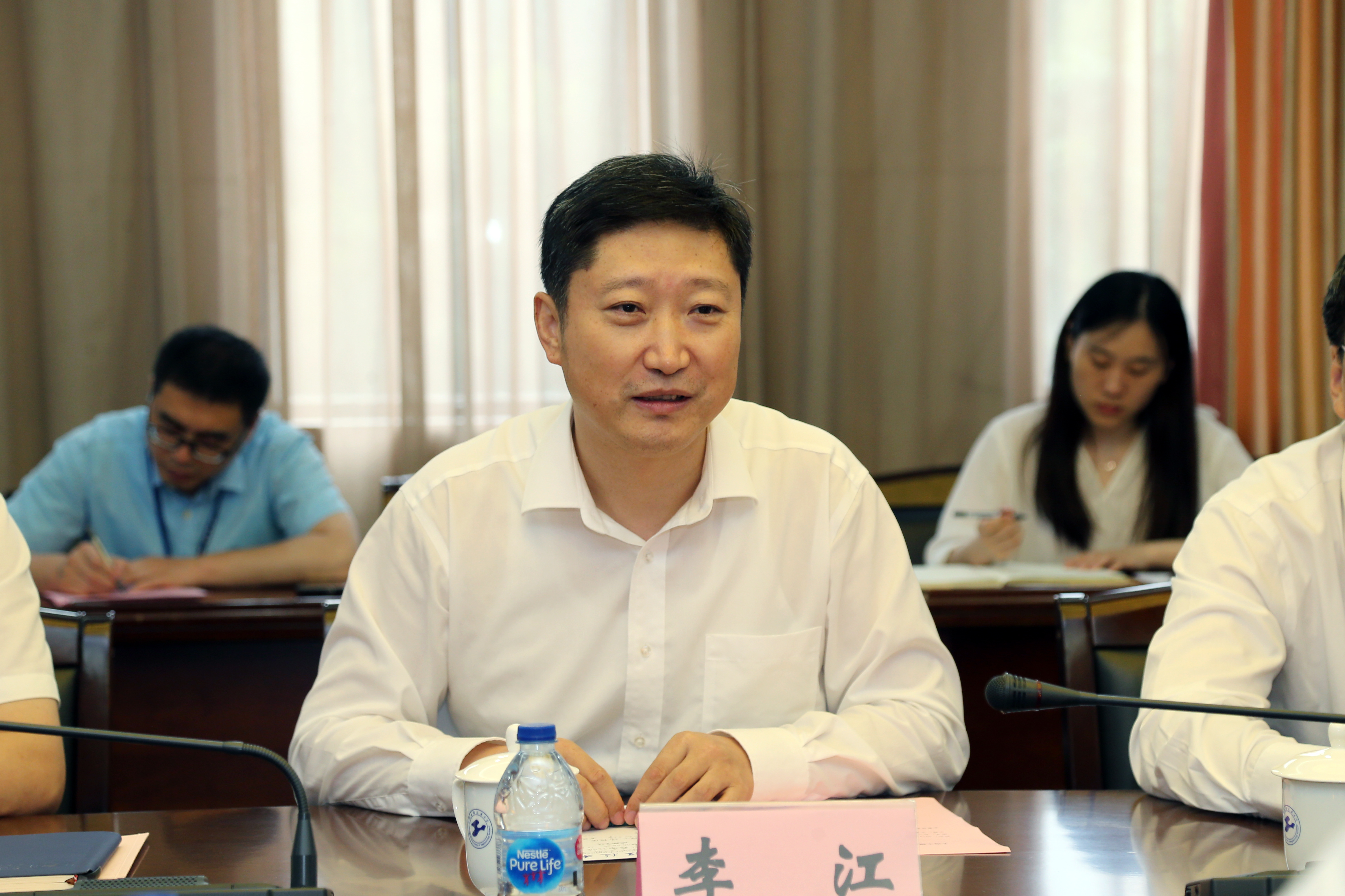 李江书记代表学校对感谢侯院士对工程大的信任和关心,对侯院士一行莅临学校指导表示热烈欢迎。李书记指出,学校党委将全力支持药物智能制剂与智能制造研究中心建设,做到高起点、高标准,为研究中心建设成为国内一流的研发平台提供全方位保障,并衷心期待研究中心在侯惠民院士的指导下结出累累硕果。