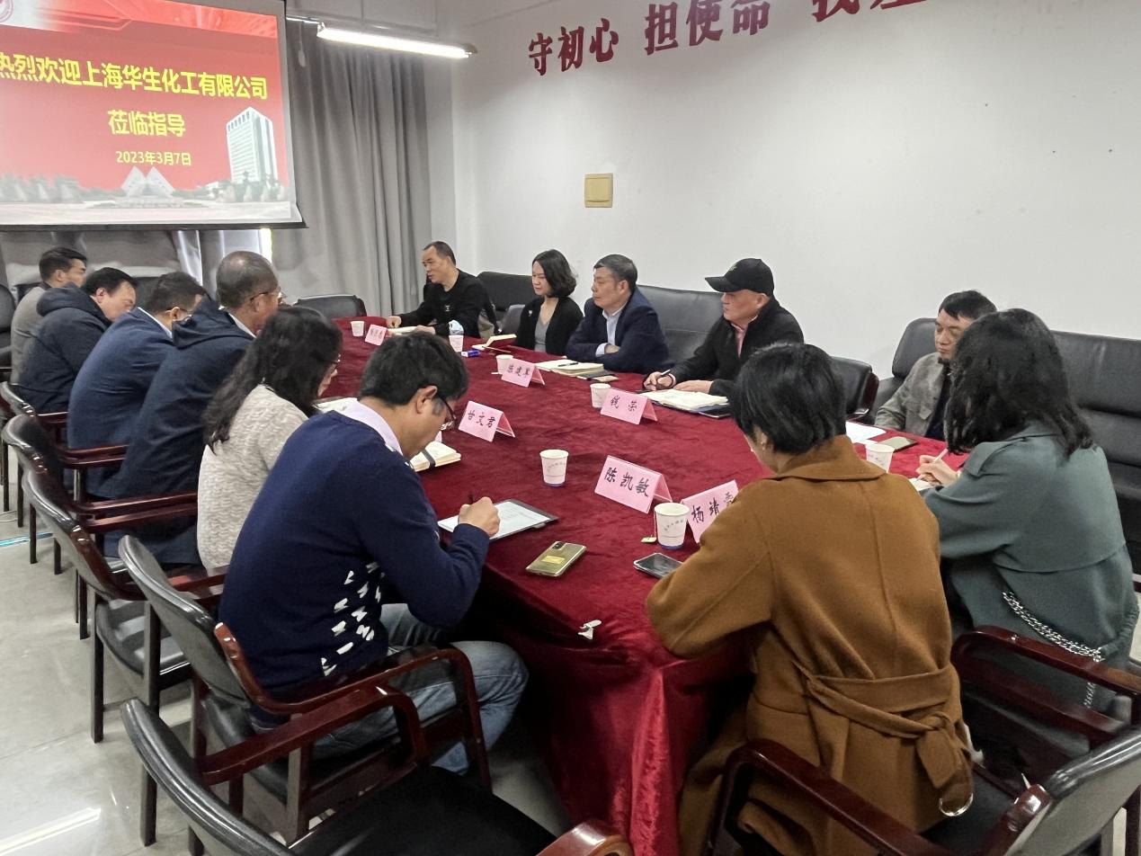 3月7日下午,上海华生化工有限公司党委副书记、总经理陈建军一行五人访问437ccm必赢国际,寻求校企合作。437ccm必赢国际党委书记宋勤健,副书记、院长王金果,温绍国、甘文君、王继虎、陈凯敏、范欣、杨靖霞等参加交流座谈。