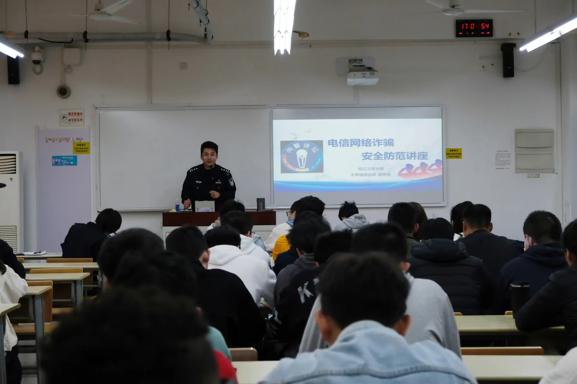 为进一步增强大学生法制意识,认清新型诈骗犯罪的本质和手段,切实提升大学生反诈防骗能力,3月14日,437ccm必赢国际团委在教学楼B407教室举办了“你我同心,反诈同行”3.15防诈骗讲座。本次讲座邀请到松江大学城派出所杨东青警长主讲。