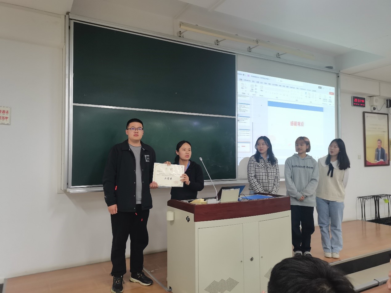 四名在外校读研的2022届校友金怡彤、朱沁淇、龚逸群、张余镕为学弟学妹介绍了考研备考经验,分享了从本科到研究生的心路历程,畅谈了研究生学习生活的体验和感悟。郝宗娣老师讲述了四位校友在工程大就读期间的优异表现,并借此机会为荣获2022年校级优秀毕业论文的张余镕同学呈上“迟到的”获奖证书。