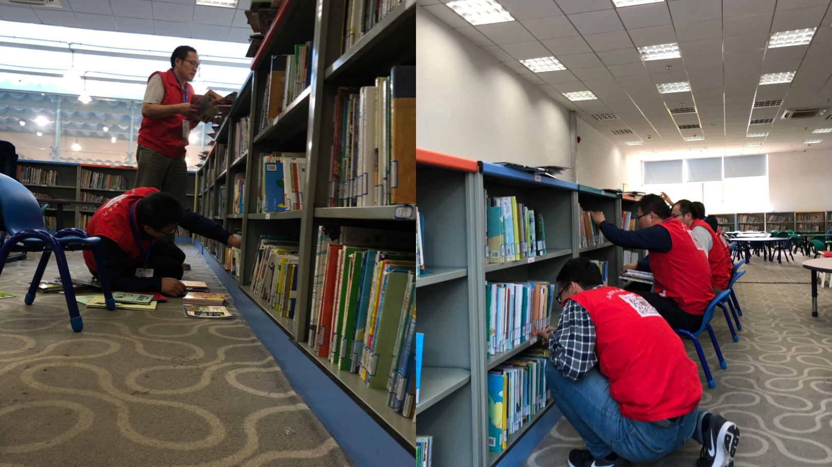 “不忘初心、牢记使命”主题教育在学院党委深入开展,学习实践热情在党员中不断升华,为落实校党委主题教育要求,在边学边检中加强党员学习深度,提升党员服务意识和本领,化学工程与工艺教师和学生党支部联合学习实践,互帮互促,共同提高。10月25日下午,两支部一起来到松江区图书馆,一起开展图书馆志愿者服务,进行场馆清扫、图书整理、书籍登记等志愿工作。很多教师党员是第一次做图书馆志愿者,虽然工作内容简单,但图书馆志愿服务担负着文化传播的工程,意义重要,党员教师和同学都投入了十分的热情;虽然工作繁琐复杂,但每位党员都能仔细认真对待,一丝不苟。为了确保准确,有的党员甚至趴在地上仔细核对书目,体现出党员不怕吃苦,克服难题的攻坚精神。在整理书籍和登记书目中,教师党员还提出一些解决难题的方法,发散思考,比如利用无人机和人工智能技术帮助调整书籍存放,采用信息技术整理书目等方法和建议,得到了图书馆管理人员的回应。