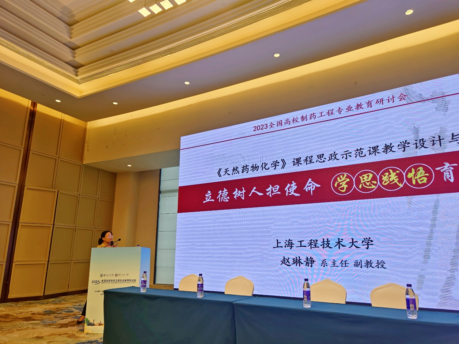 制药工程系主任赵琳静副教授应邀在大会第二分会场做题为“《天然药物化学》课程思政示范课教学设计与创新实践”的报告,详细介绍了我校“天然药物化学”教学改革创新的顶层设计以及落实立德树人根本任务的举措和经验,并与参会学者进行了深入交流讨论,受到了与会专家的关注和好评。