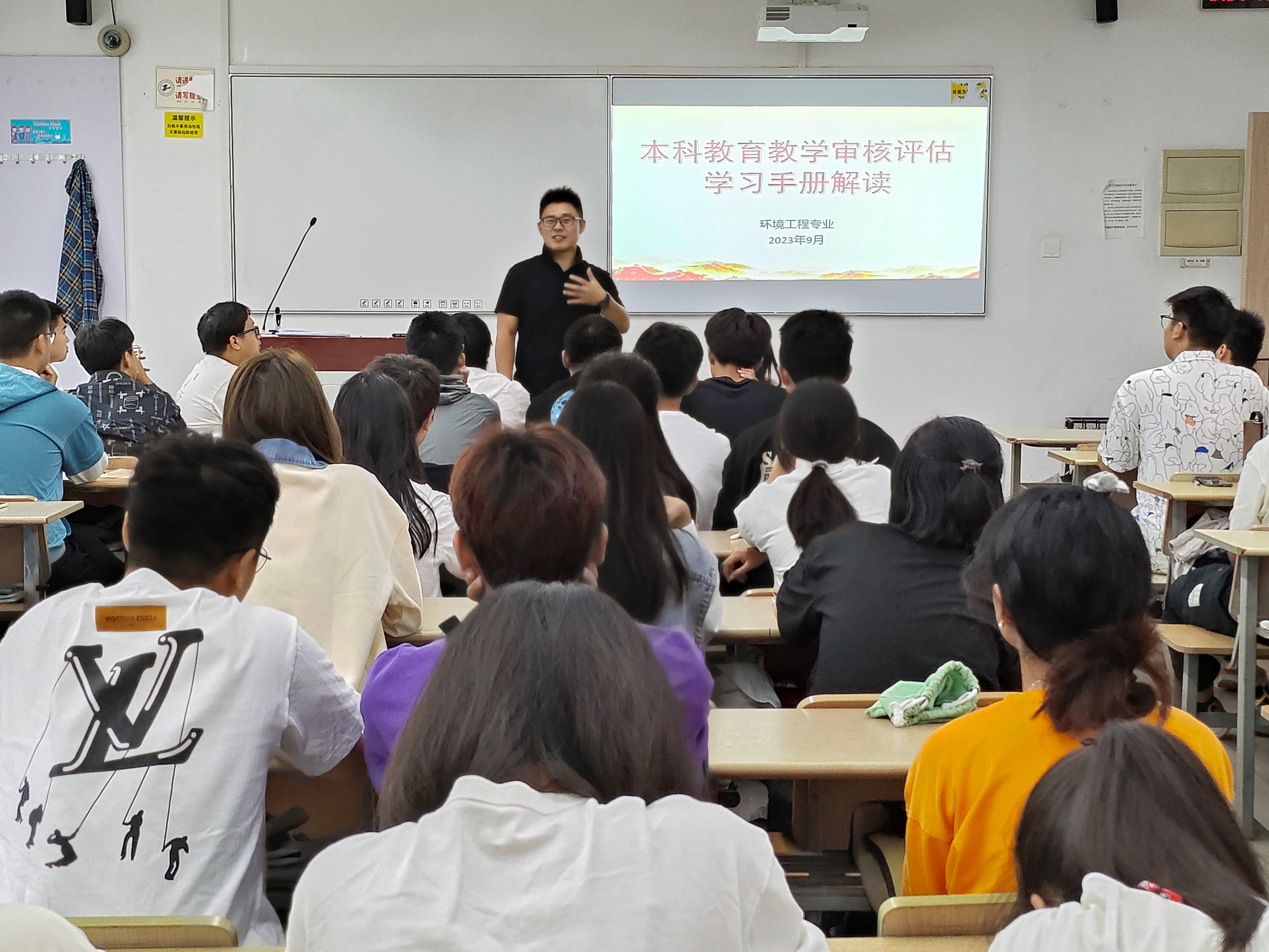 张晓普老师首先为同学们解读了审核评估对学校办学与发展的非凡意义,强调了本次审核评估工作的严肃性与重要性。他分模块分别为同学们讲解了“学校发展历程”“校训与价值观”“办学规模与特色”“学校一流专业建设情况”等内容,加深了同学们对校情校史的认知与了解、增加了大家爱校荣校情怀;在“评估知识”模块,张老师不仅解读了“‘五位一体’评估制度的含义”“我校参加院校评估的经历”“新一轮审核评估的工作目标”等院校评估的基础知识,还强调了新一轮审核评估过程对同学们的基本要求,他要求大家要以积极的心态、饱满的热情做好准备,为学校的教育教学评估贡献自己的力量。