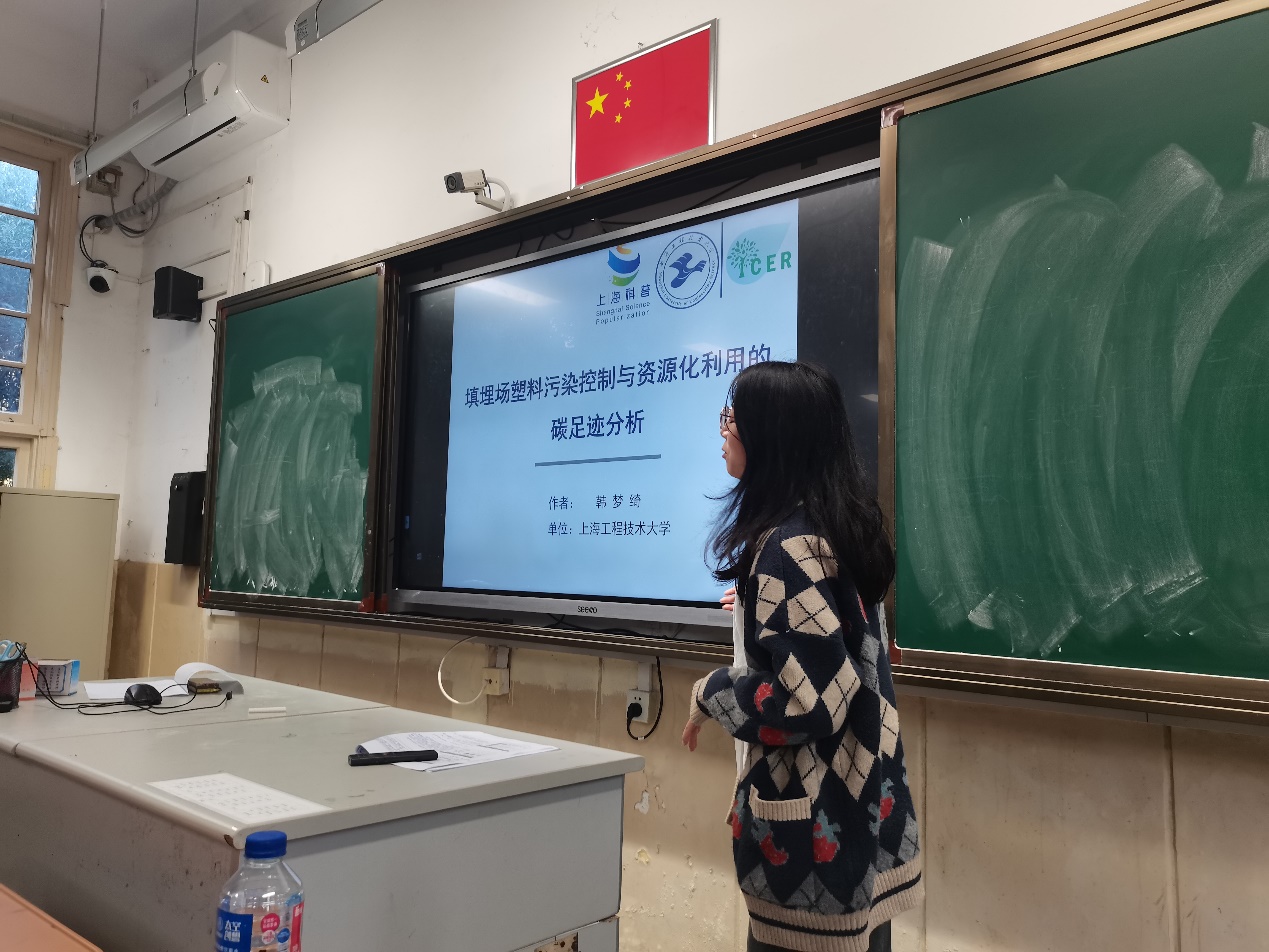 “双碳”战略里的“碳”是什么?为什么要实施“双碳”战略?我们能为“双碳”目标实现做些什么?胡婷莛老师的一个个问题,激发了同学们浓厚的好奇心和求知欲。胡老师通过五个低碳前沿技术应用实例介绍和讨论帮助学生进一步理解“双碳”战略,她呼吁大家从我做起,践行绿色低碳生活。顾敦罡老师介绍了437ccm必赢国际环境与资源创新中心近年来开展的碳足迹评价与碳减排系统集成相关的研究,加深了学生们对碳足迹和碳减排的认识,点燃了学生投身碳足迹相关科创课题研究的热情。韩梦绮同学结合她最新发表的一篇学术论文,介绍了参与的碳足迹研究工作。