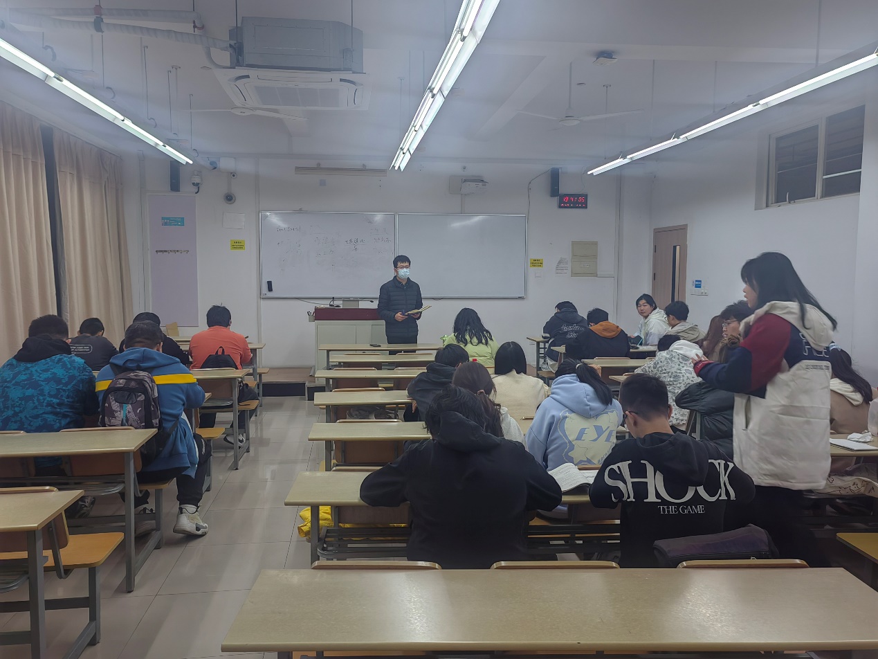 11月30日晚,21级集体班会在教学楼D415教室召开,系主任李旋坤老师、班主任郝宗娣老师、辅导员张晓普老师共同参加。班会主要围绕近期大三的学风和学业问题展开。步入大三,既有学业上的压力,也面临着升学、就业的选择,系主任李老师出席班会足见全系教师对21级同学思想、学习、生活情况的高度重视。三位老师对同学们在学习上遇到的困难表示关心,设身处地的用自身求学经历和解决办法给同学们举例示范,希望同学们发挥主观能动性,克服畏难心理,找到适合自己的学习方法并积极付诸行动。李老师带着同学们再次阅读了培养计划,希望大家对照毕业要求核对自身完成情况,并为后续选修课程做好计划。郝老师、张老师鼓励同学们多与任课老师、全程导师沟通,积极参加学校、学院组织的活动,认真完成老师们布置的任务。同学们认真聆听了三位老师的教导,将振奋精神,争取在本学期取得进步。