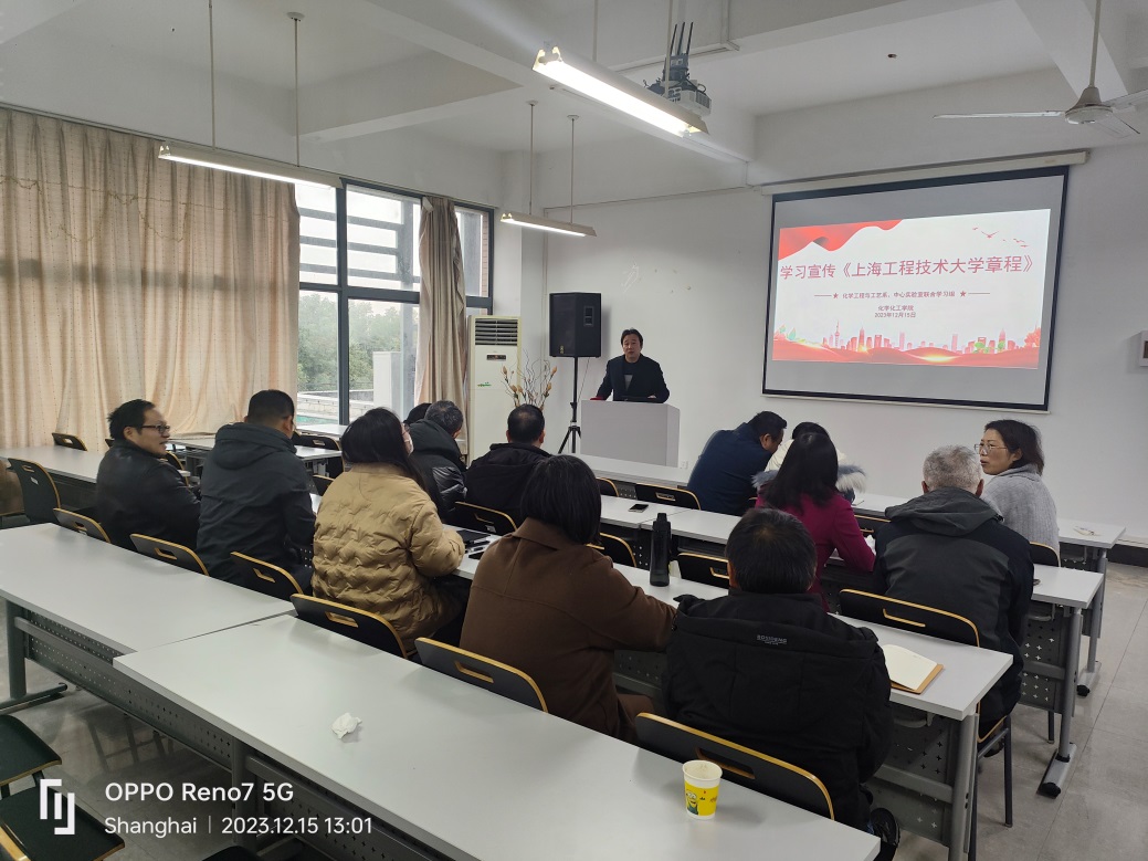 12月15日中午,化学工程与工艺教工支部组织本专业和实验室全体教师集体学习上海工程技术大学章程。